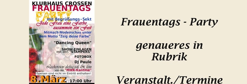 Wenn Euch etwas auf dieser Seite fehlt, oder wenn ihr noch Ideen habt, was hier erscheinen sollte, bitte ich um eine Info auf folgende Mailadresse: macher@crossen.de